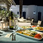 Im Hotel wird ebenfalls ein Frühstücksbuffet angeboten. Außerdem gibt es eine Pool- Bar, die leichte Getränke und leichte Snacks serviert. Das Restaurant Taverna Glaros liegt circa 300 Meter vom Hotel Mathios Village entfernt.